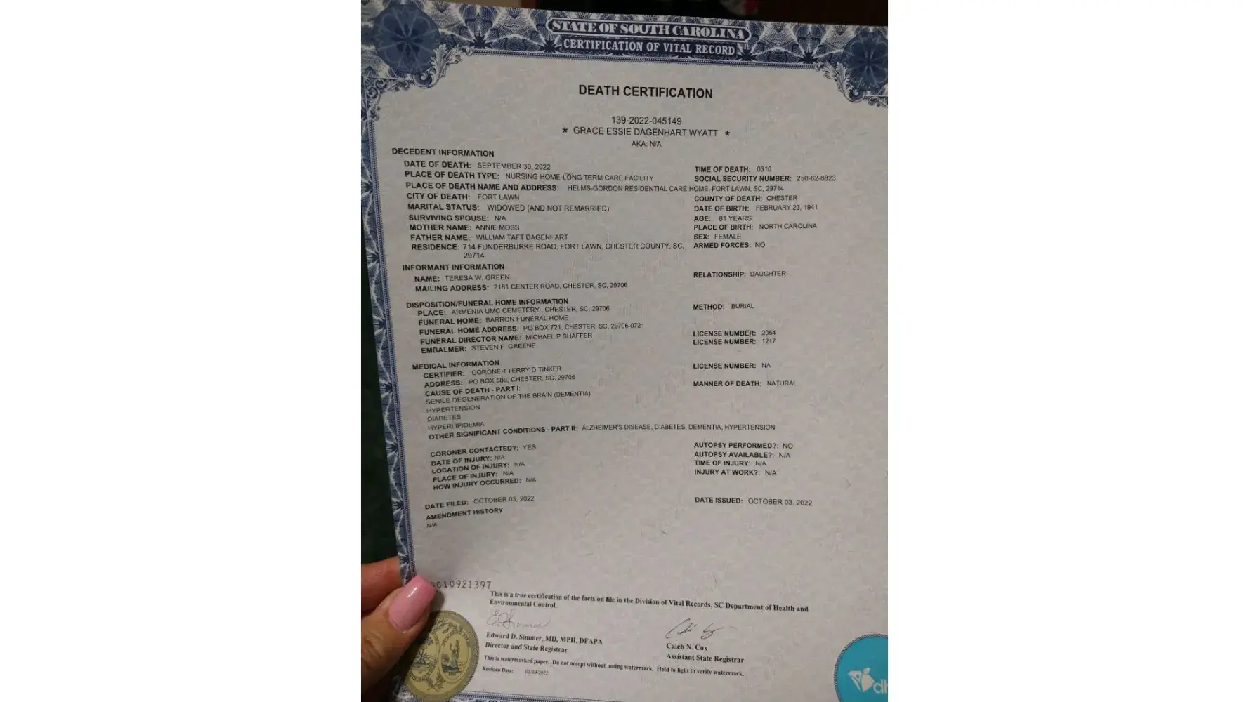 Booking# B4J7D0 sail date: Oct 1 2022 Sail date got backed up because of Hurricane Ina new sail date Oct 2, 2022. On Sept 30 2022 at 3:10 am My mother passed away. I had to call to cancel our cruise. A few hours later Carnival said we could cancel because of storm. I had all ready cancelled. I got my port fee and taxes back which was $416.72 but she said She could not give the $280.00 back. I had to fill a death certification to get credit. Where do I send death certification to. We already have another cruise booked for May 2023.