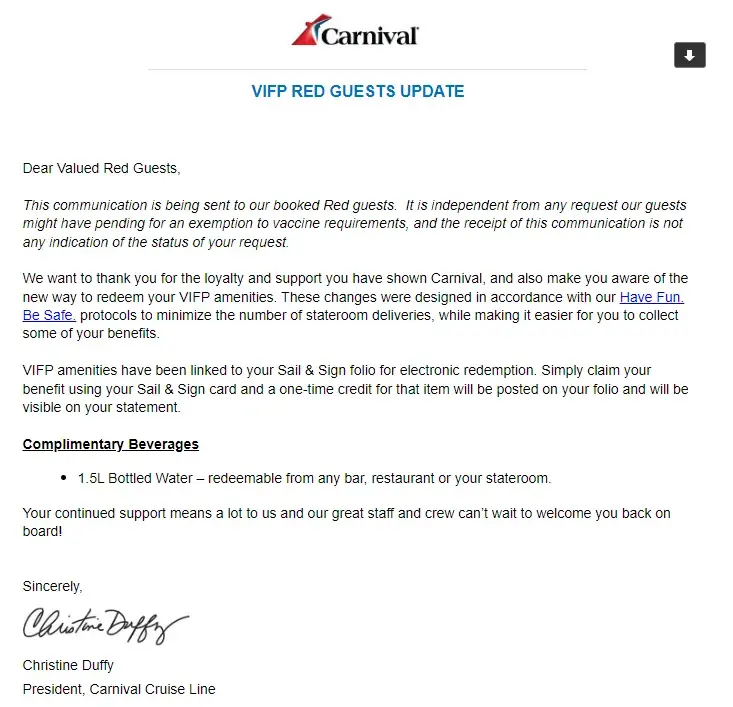 Desired outcome: I would like Carnival to actually do what they have repeatedly told us and follow the CDC's requirements, which at this time means dropping the vaccine requirements.