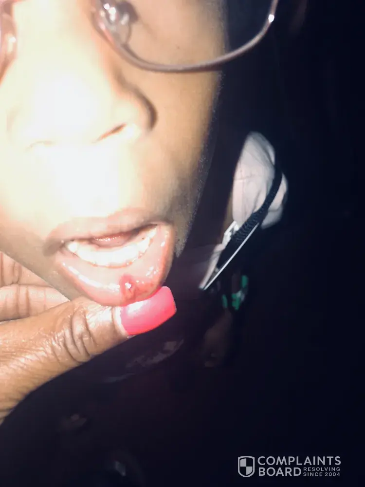 These pictures don't help your case. She bit her lip...big deal. And why would you be entitled to a FULL refund when it happened on the last night of your cruise? Things like this is why our insurance is so high in this country, companies have to protect themselves against ridiculous claims.