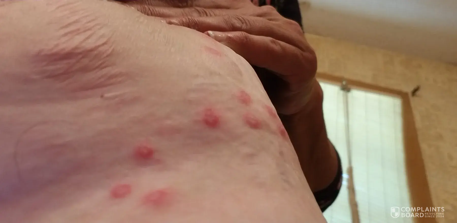 I was on The carnival dream April 29th went to bed on Thursday night and woke up with bites around the hip leg line back and butt area told my stewardess Tina which was great she called the supervisor they tore my room apart said they found nothing but sanitized everything if there was nothing found why sanitize I went to medical and they didn't even see me wouldn't see me told me I had to buy hydro cortisone cream and benadryl. I had benadryl and bought 4.25 hydro cortisone cream to stop the itch. I have pics of the bites which are many my daughter has bites on her too. We had a king bed. This is my 2nd time cruising on the dream. Never thought this would happen with a company of your size. These but a few pics I added to show the bites