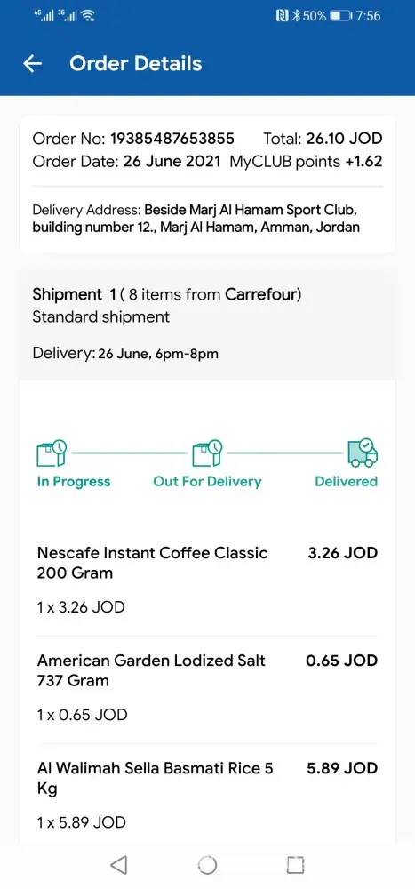 I paid 6.248 KD online on 20 July 2021 but received items of 4.123 KD. The remaining items arrived on 23 July. However, the delivery man refused to deliver until I pay again.