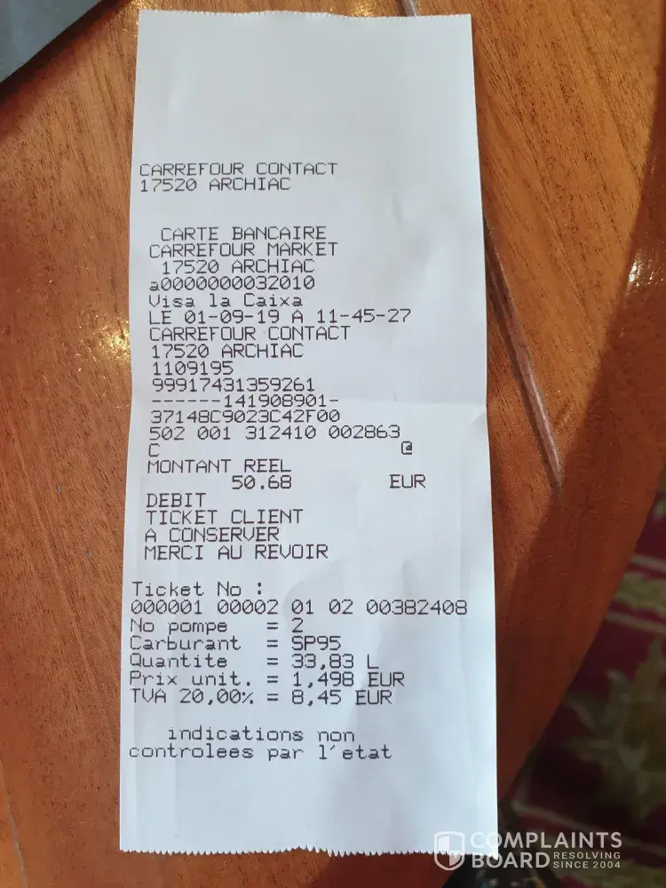 Carrefour lack of legally required proof of card payment refusal