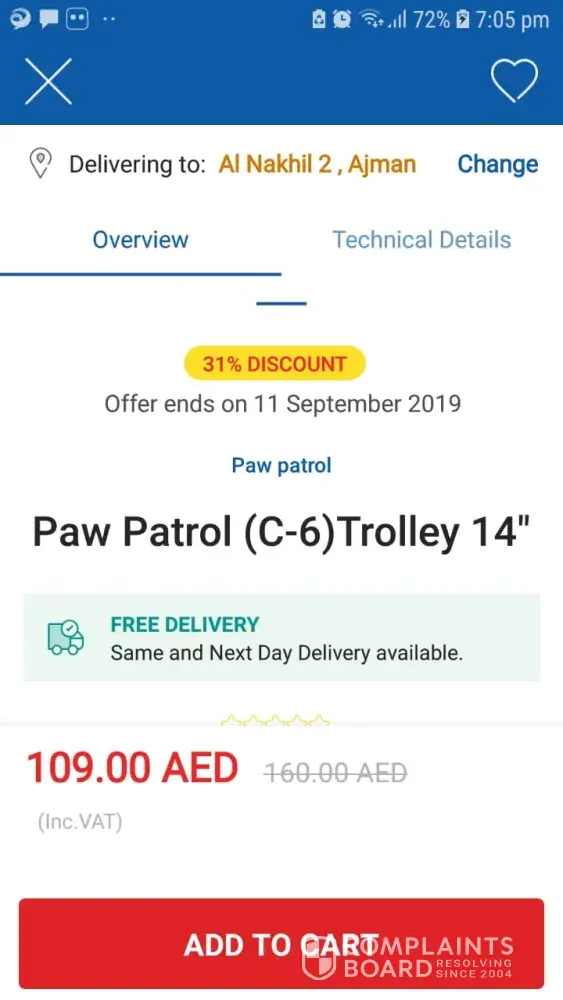 Really I have a big disappointment from your delivery of the purchased items online. I have bought an item on 6 September 2019 with Order Number is [protected] and they mentioned below the item "Free dev on same and next day delivery available" and when I bought the item they informed that the delivery will be within two to four working days. and now the fourth working day is over yesterday and till now the item not deliver and they told me it is not confirmed by the supplier till now. I have a question. if the item is not available with the supplier and you can not deliver it, why you are showing the Item online and giving a commitment to the customer that this item will be delivered maximum between 2 to 4 days. tomorrow and day after tomorrow are not working days. and this is not the first time I am facing this type of issue with your delivery of items since I bought a TV before 9 months and I faced the same scenario and issue. please I need real action and I want this item to be delivered as soon as possible since my son is going to the school without a backpack