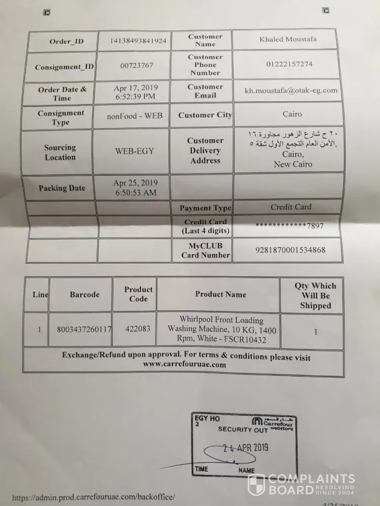 d) I contacted carrefour's contact number to report this issue on May 2nd complaint number [protected] and ever since received a very poor response to this major mistake that caused a great inconvenience.