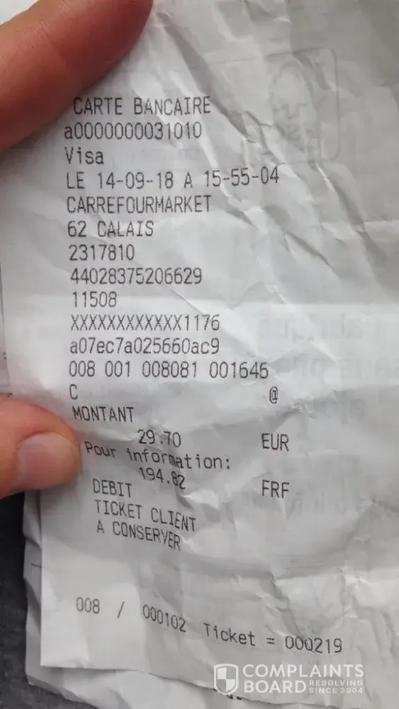 Yesterday I was in Carrefour, in Calais, France - at the "Ceour de Vie" Market. I had29.70 Euros worth of shopping, and went to the self service checkouts. My card was declined twice (which was strange as I had just put 30 euros on there.) I check my bank account on my phone, and it said that the 29.70 euros gone through, and was charged - but the till still said the payment was rejected. I asked the Shop attendant, who said it wasn't their issue and I would have to speak to my card (Revolut). I then went to another till and had to pay with my alternative card, HSBC.