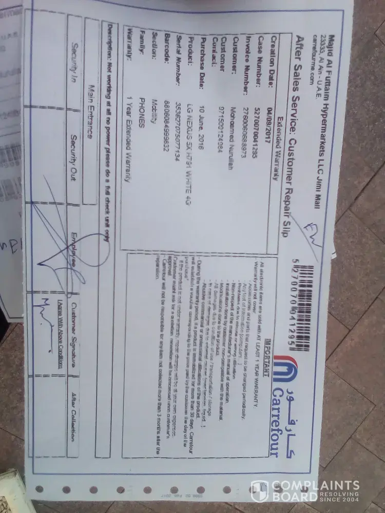 My Nexus 5X suddenly became dead and it was under extended warranty. I submitted my device to Carrefour, Jimi Mall in Al Ain on 4th September 2017. They told me initially that I would get my device delivered back after repairing within 3 to 4 weeks. 4 weeks has already passed and I went to Carrefour Jimi Mall today and they didn't give satisfactory reply. I am frustrated due to this reluctant and unpunctual service without keeping timeline.