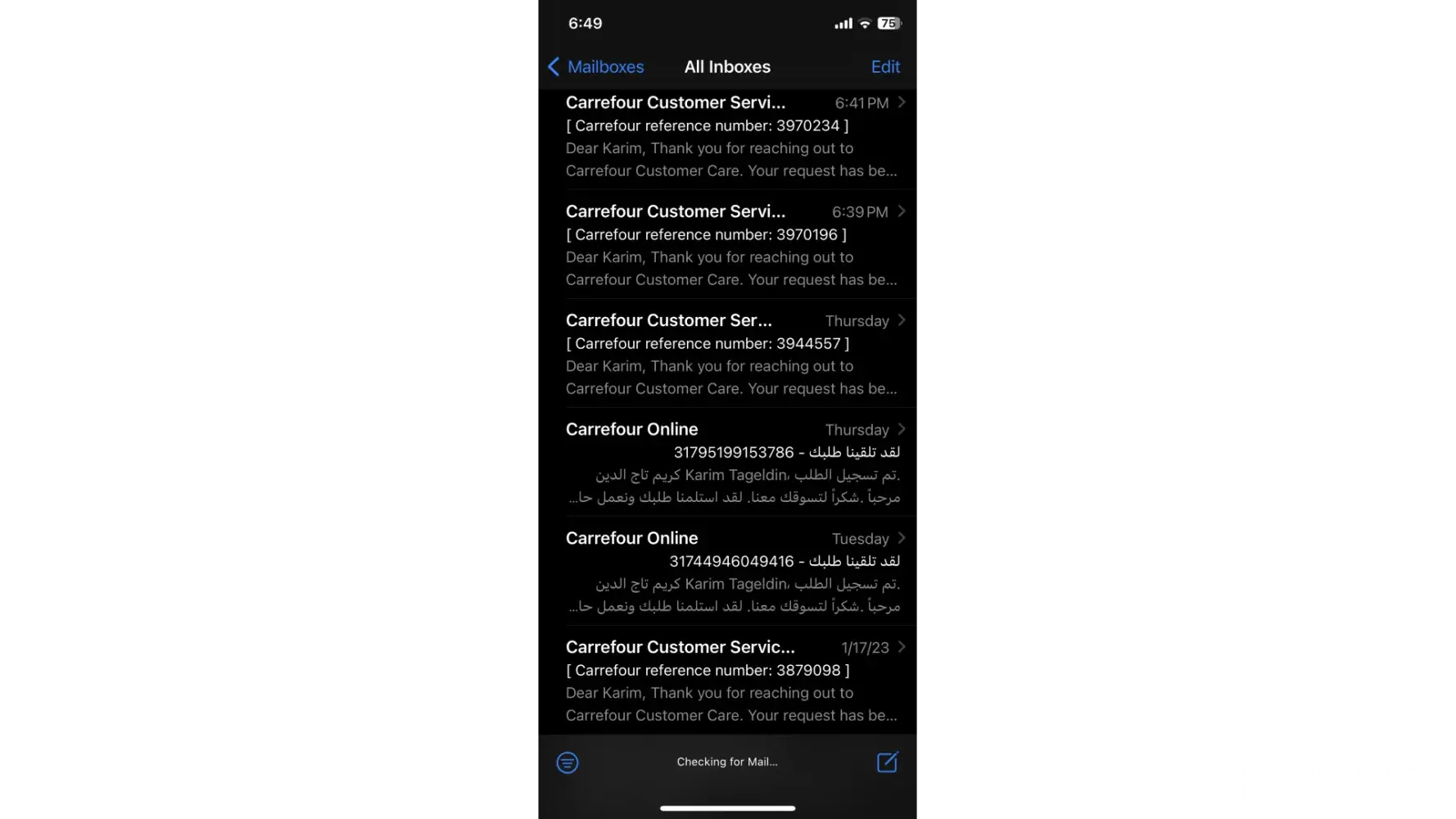 Carrefour Cancellation and refund for order number [protected]