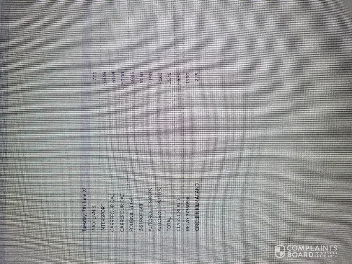 I live in Ireland and was staying in Cabrieres 302100, last week. On Saturday 4/06/22, I bought fuel from a Carrefoure Drive station near UZES. I bought €61.38 of fuel and was charged for this today plus €150 for no reason I can understand. The transaction was by a small screen on the pump and my French is not good so I do not understand what happened. You will understand that it is not possible to fill a small car with that amount of fuel so I would be glad if you could investigate and refund the €150. I show a screen image of the debit card transaction below.