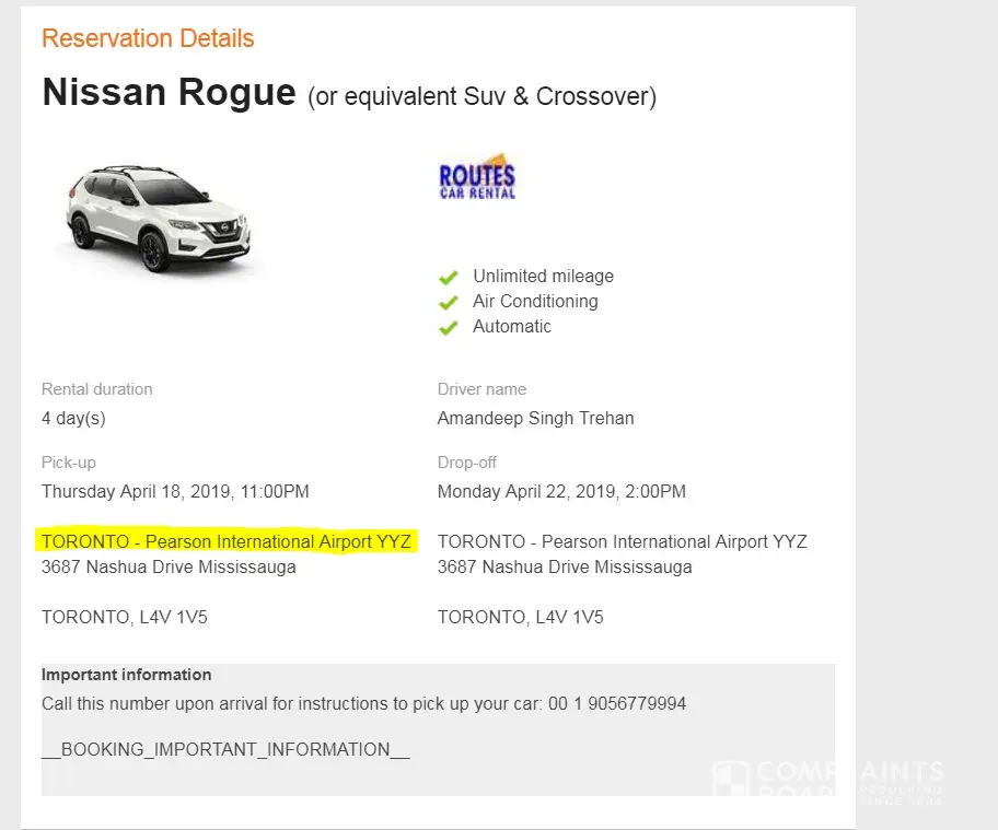 Read full complaintCar rental