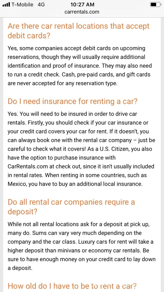 CarRental.com advertises that you can rent a car with a debit card. They also popped up strongly when I searched via Google for companies who accept debit cards. But after I paid with my debit card, they said the company I booked with does not accept credit cards. And I do not own a credit card.