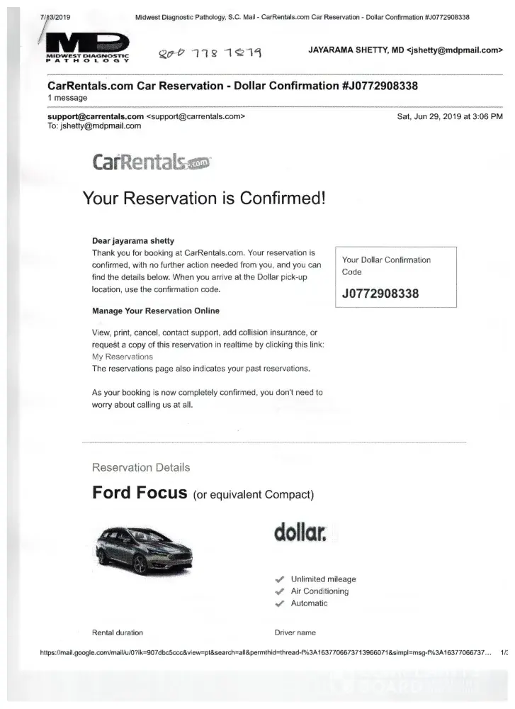 Please find in the attachment receipts from both Rental car.com as well as Dollar car rental.
