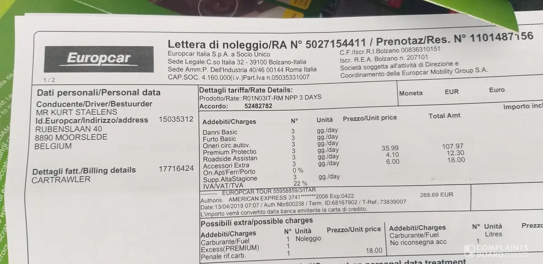NU blijk uw partner Europcar nog eens 168.79 euro te hebben afgehouden Res [protected]..