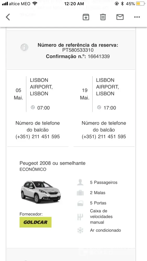 I rent a car through your platform with Hertz at aerport Casablanca Mohamed V from june 6th 2019 to 23rd june 2019.