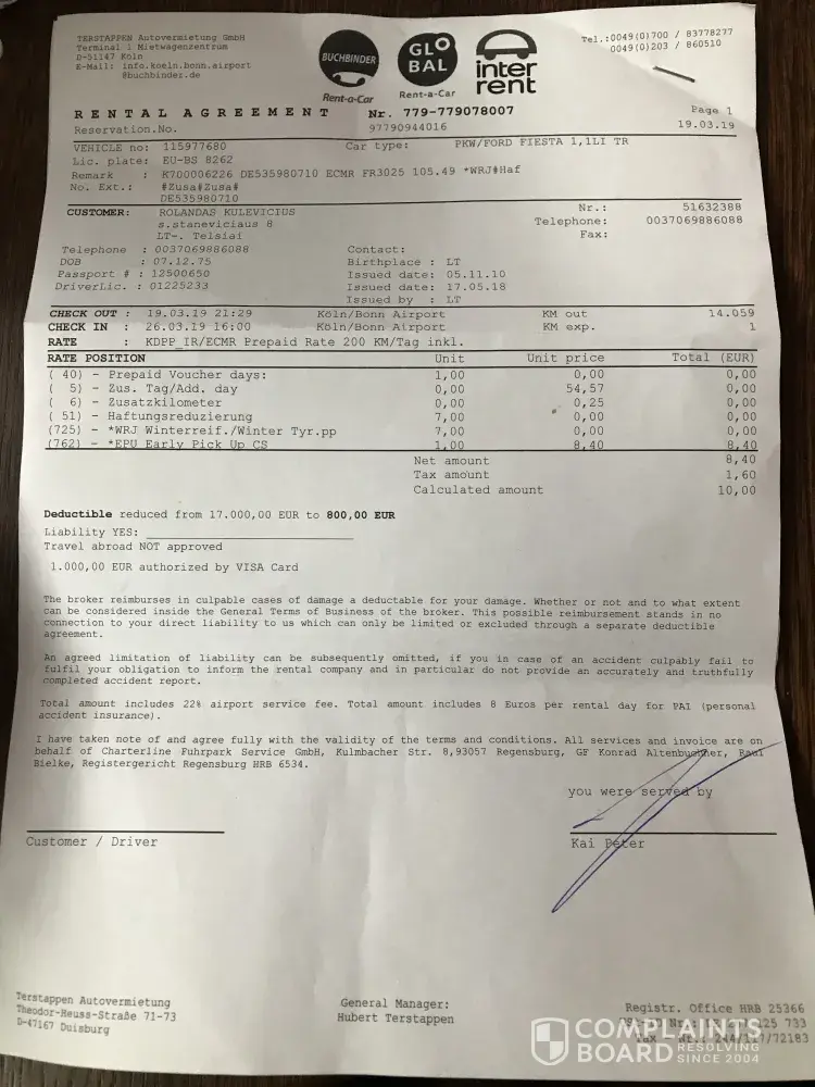 I contacted CarTrawler and was advised it had nothing to do with them and directed to Interrent. I believe this is their responsibility