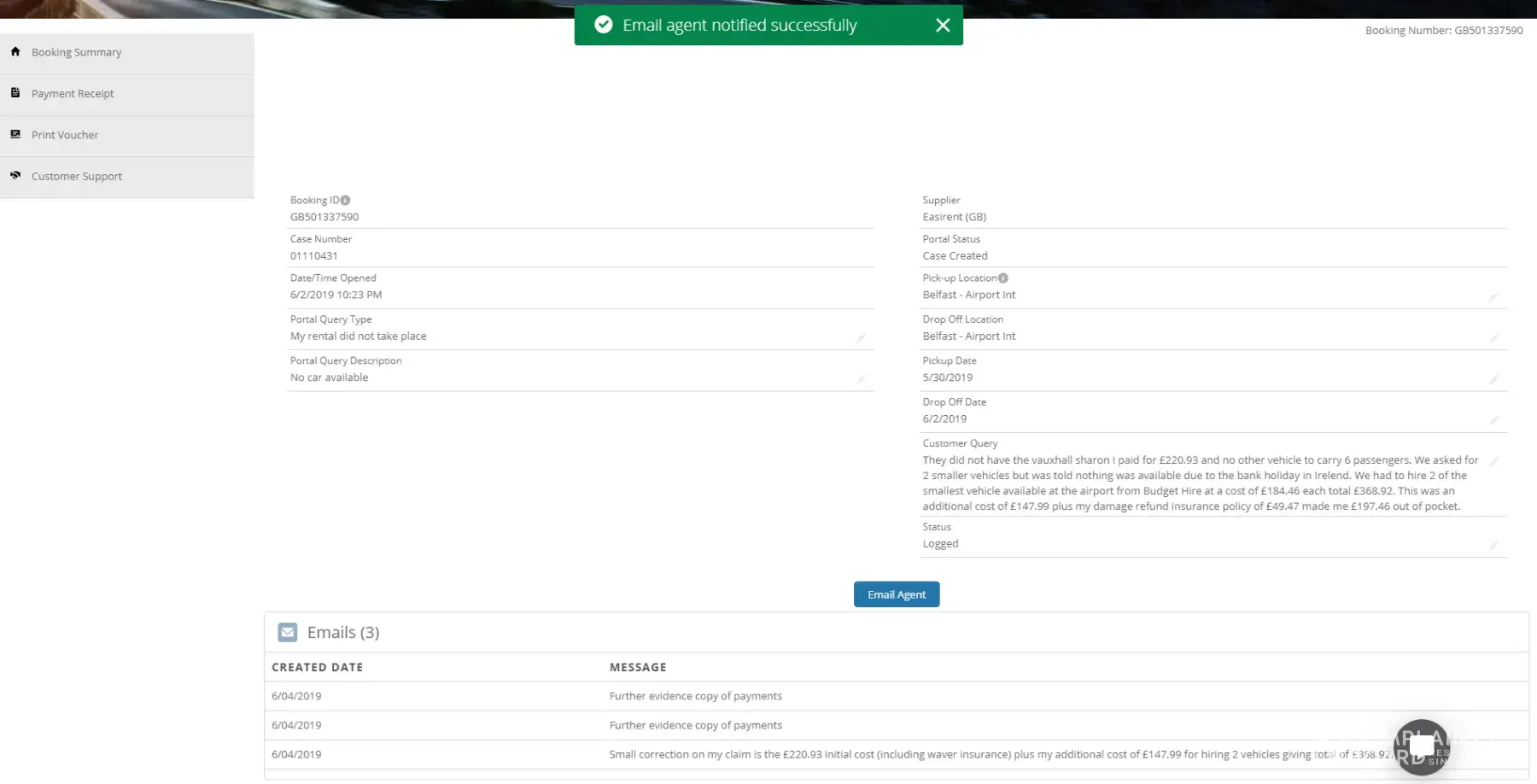 I would like to raise a complaint over the way my recent car hire booking was handled.