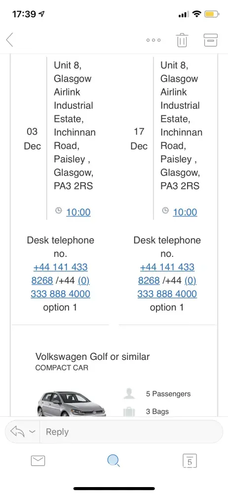 CarTrawler booking reference number us422443990