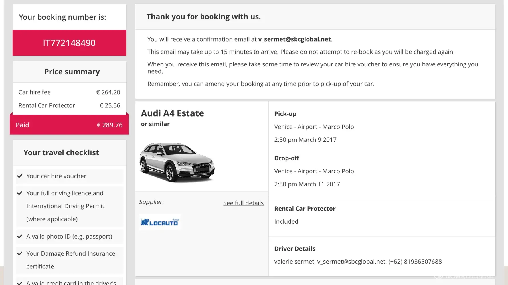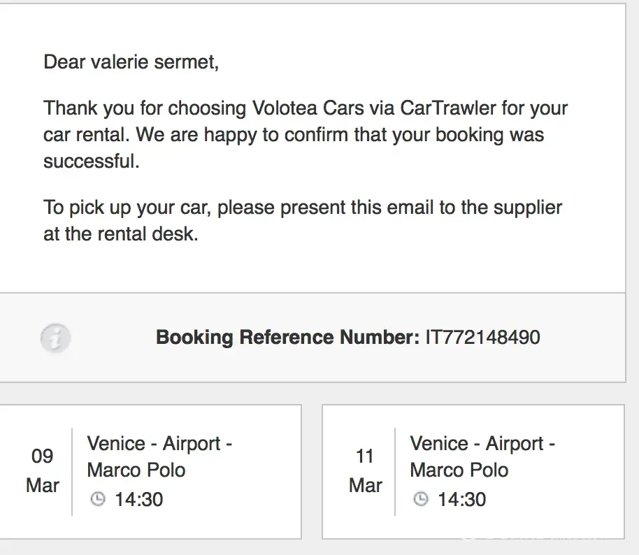 Thank you for choosing CarTrawler, Cheapflights Car Rental Partner for your car rental. We are happy to confirm that your booking was successful.