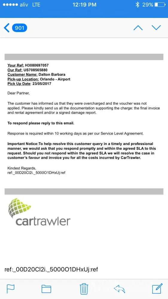 CarTrawler follow up on double payment (prepaid reservation but charged full reservation price by dollar)