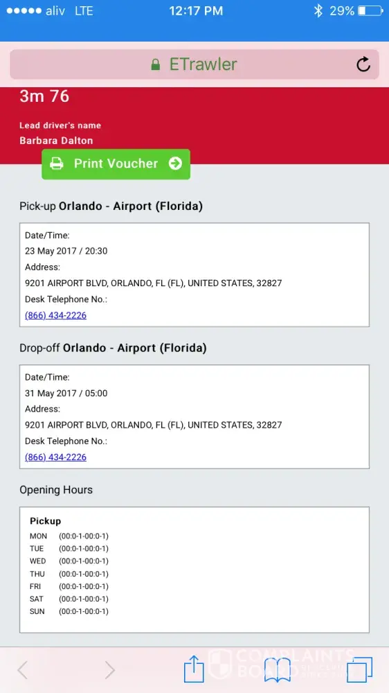 I booked a car on car trawler and they gave me a car from woodford car rental. Two hours later I cancelled the vehicle. As I got a cheaper car with a 1/3 of the deposit.