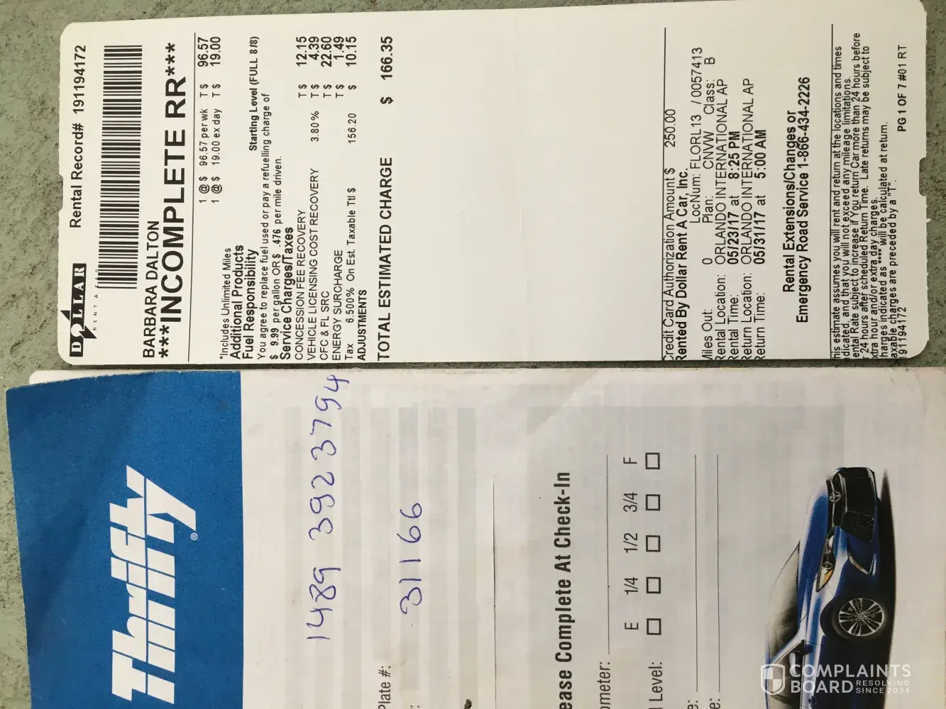 Attached are the requested Receipts/bank statements showing my prepaying with Etrawler and the additional full payment to Dollar rental car (agent must of changed reservation somehow... as I show of owed just the designated balance per Trawer receipt.