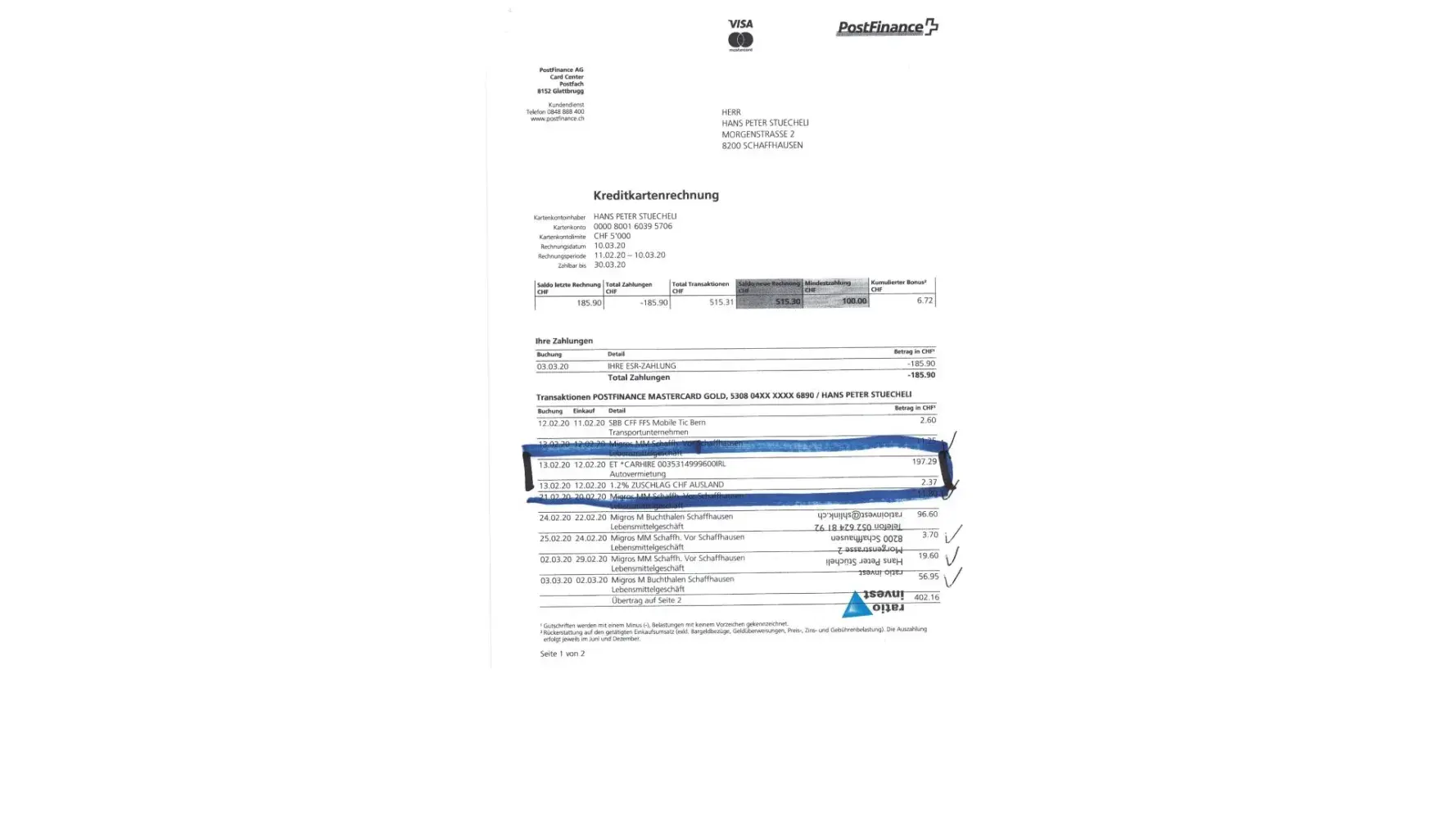 I therefore kindly ask you to repay the amount of Swiss Francs 197.29 (see attachment 2) either to my credit card (Mastercard [protected]) or to my bank account in Switzerland (IBAN: CH65 [protected] 1).