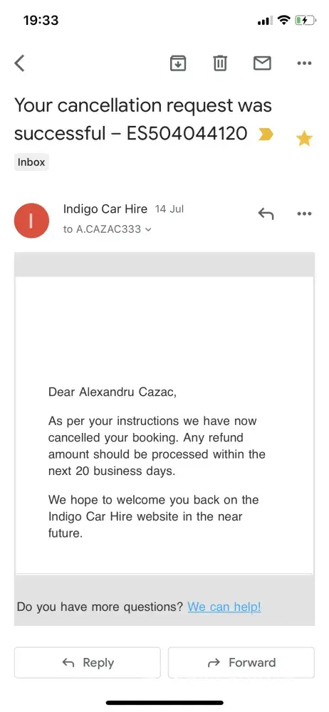 Hire car refund