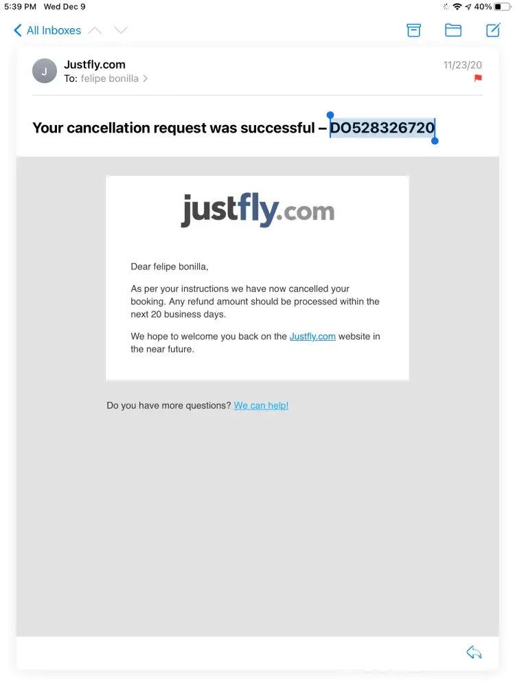I have attached all proofs regarding the booking and cancelling.