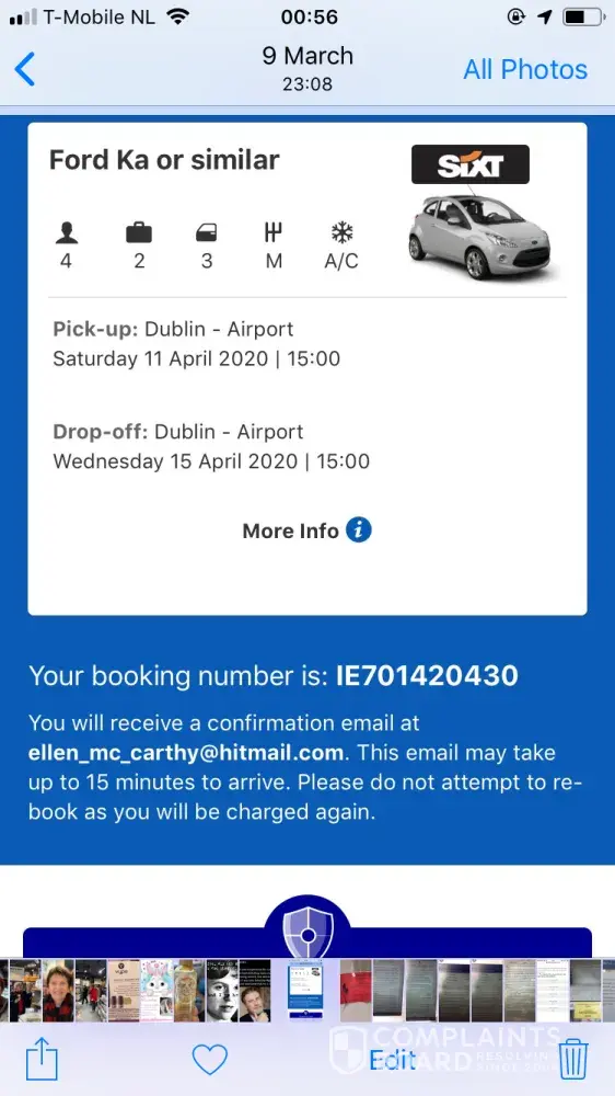 I booked a vehicle for collection at Dublin airport on the morning of 13 December 2019 and return on 23 December 2019. I however was not able to fly from South Africa as I needed a transit visa for London and was not aware of this. I immediately cancelled the booking online on 12 December on the same site that I made the original reservation. I am now advised by SIXTH that I need to get my refund from Cartrawler, even though I never dealt with them.