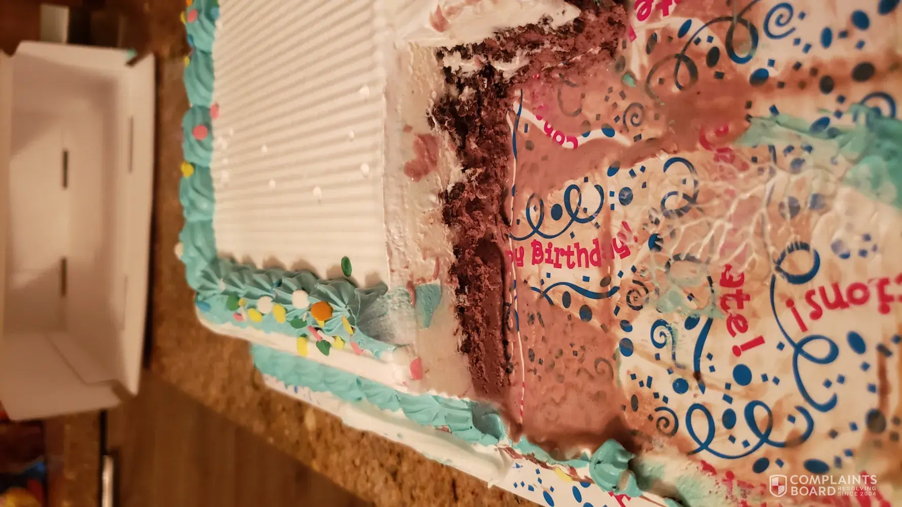 Desired outcome: I would like a free coupon to get another cake due to it was bought for a birthday