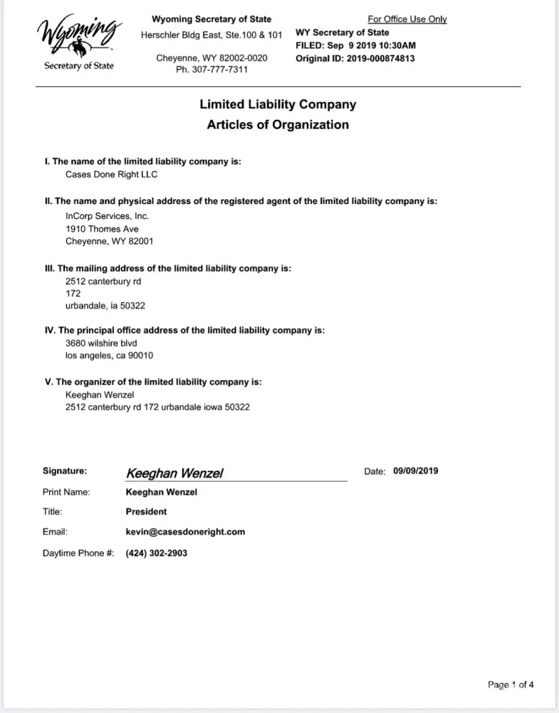 We were burned too. This company sounded like fraud and guess what they took our money for online marketing and never delivered what they promised. Thank you for providing their correct name and address Johny H. If anyone else has more info please contact us. They promised to refund but so far after so many months they have not. Cases done right is definitely a fraudulent company. Be aware