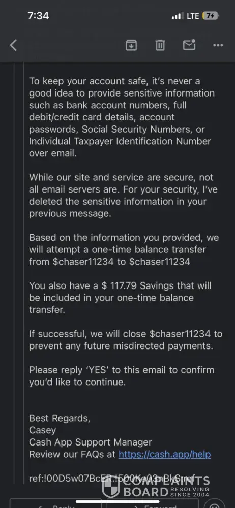 - While Cash App has a high level of trust, our investigation has revealed that the company's complaint resolution process is inadequate and ineffective. As a result, only 0% of 62 complaints are resolved. The support team may have poor customer service skills, lack of training, or not be well-equipped to handle customer complaints.