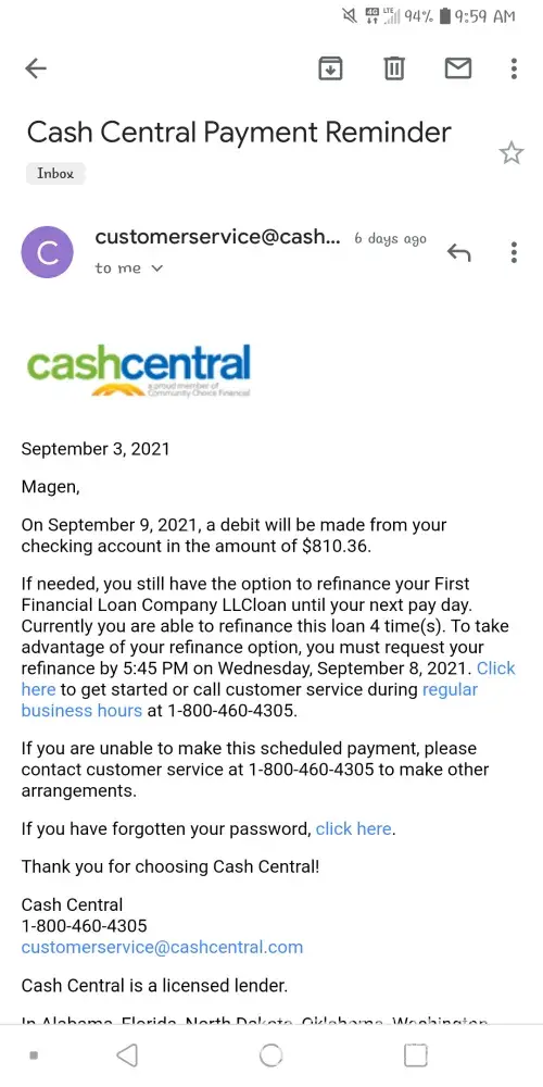 4 Cash Central Complaints