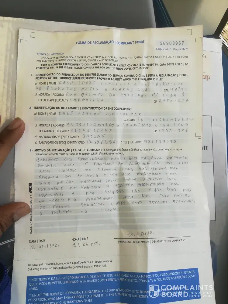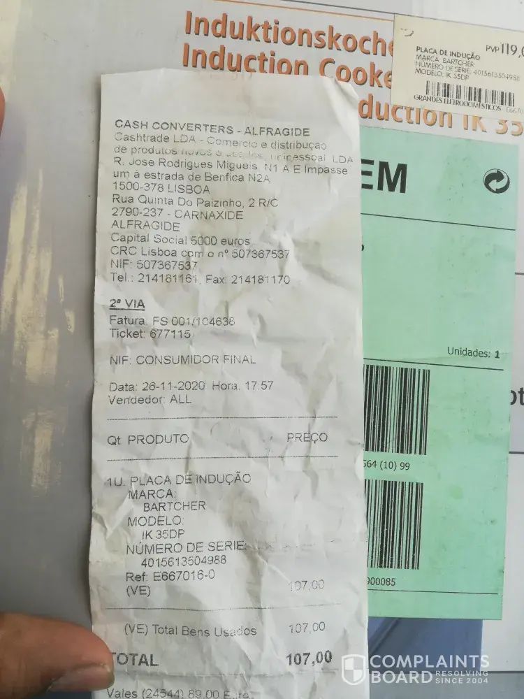 I was bought on induction stove from this store in 19, October, 2020 price was 90 euro after 2 month its stop working i was go there give it for repair because its in warranty they keep it for 30 days after 35 days I was go there for collect my product they told because of covid - 19 its not come Beck so there is one mor industion stove which price is 120 euro so I buy that product and paid the other amount of money but its same after buying in 3 month its also stop working when I was go there for one more time for repair they keep it for 30 days and after 33 days when I go for collect they told me its your problem we can't repair it when I ask for some proof for decliney warranty they don't give me anything thing they told they don't have and manger of this store talk with me so rudely and they know I can't speak Portuguese very good they don't talk with me in English and when I was asking for complain book they force me to write in portuguese.