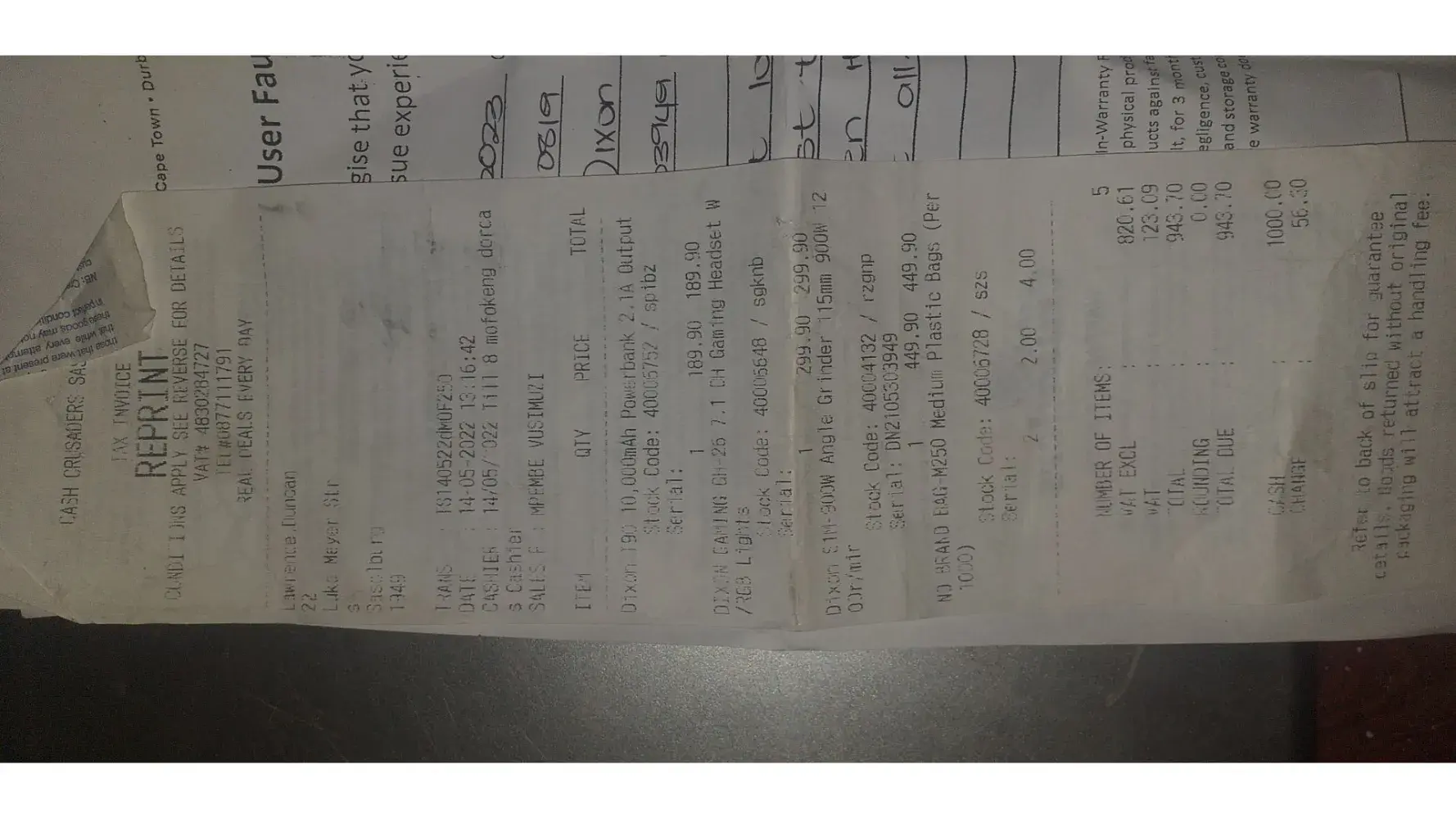 Good evening sir/madam my name is victor i brought computer at cashcrusaders that computer it was building in computer it's a computer with the screen at same time out side it's only mouse and key board only,i bought it on 30/01/2023.time 15:00:33 .when I get home it was a time for loadsheeding i ddn't test the computer,yesterday when i get back to work electricity was there , i plug the computer it was working nice after 5 hrs it switch off i dnt know why today i took it back for them to check it for me what's wrong with it, fine the two of those guys who where helping me when i bought it ,they start to test the computer,but i start to dought thise guys when they start end up taking charge they pull out the wire out of the wire cable ,they put the head of charging connect to computer they put 1 wire on the other side an 1 on tht side it blow up spackes they put a receipt page between 2 wire and they start to show 1 small red light when try to switch it still not working. To cut story off i said i need my money back but they insist,i left there computer there i took my receipt an leave now i need your help call them at tell them when can i come to collect my money pls you can't trust something that it can work for more than 5 hrs to get for repair no.they a based in Brits in north west province there contact no :[protected] ,my contact no:[protected] victor amount demanded R3000 cash thanks. I will wait for your call.