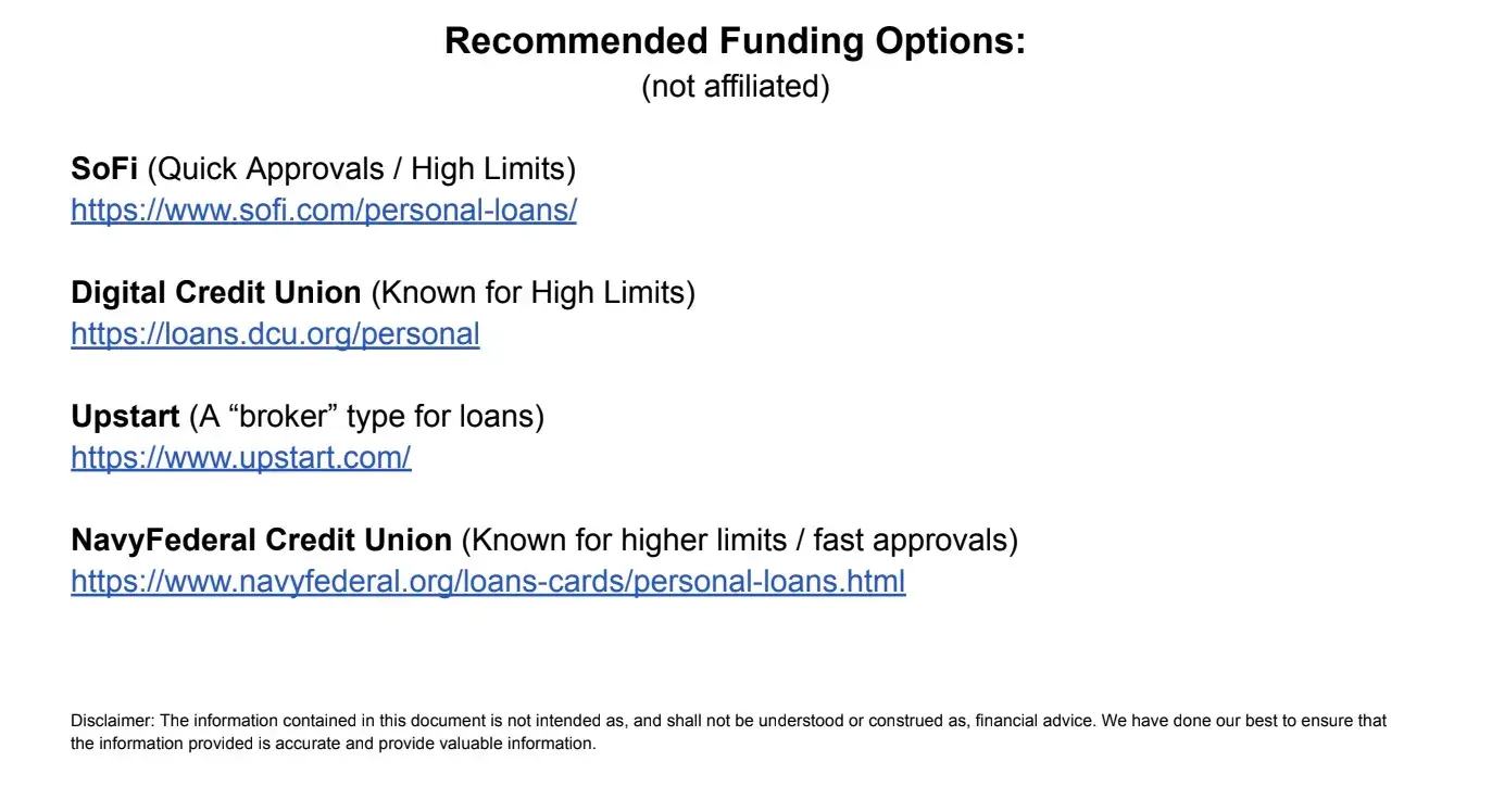 “We’ll provide you with different financing options…if you want to leverage a personal or business loan or just want to pay cash to enroll you into the program to launch your business from there…that will help you every step of the way to launch your business right away.” (Residual Income for Beginners, Mini-Course Pt. 4, 2026)