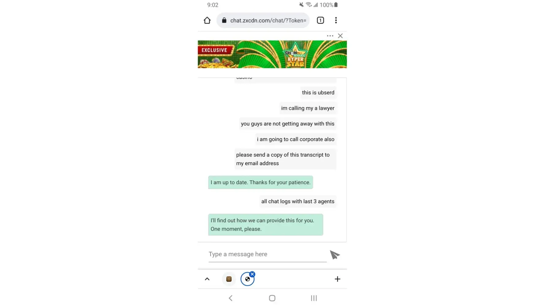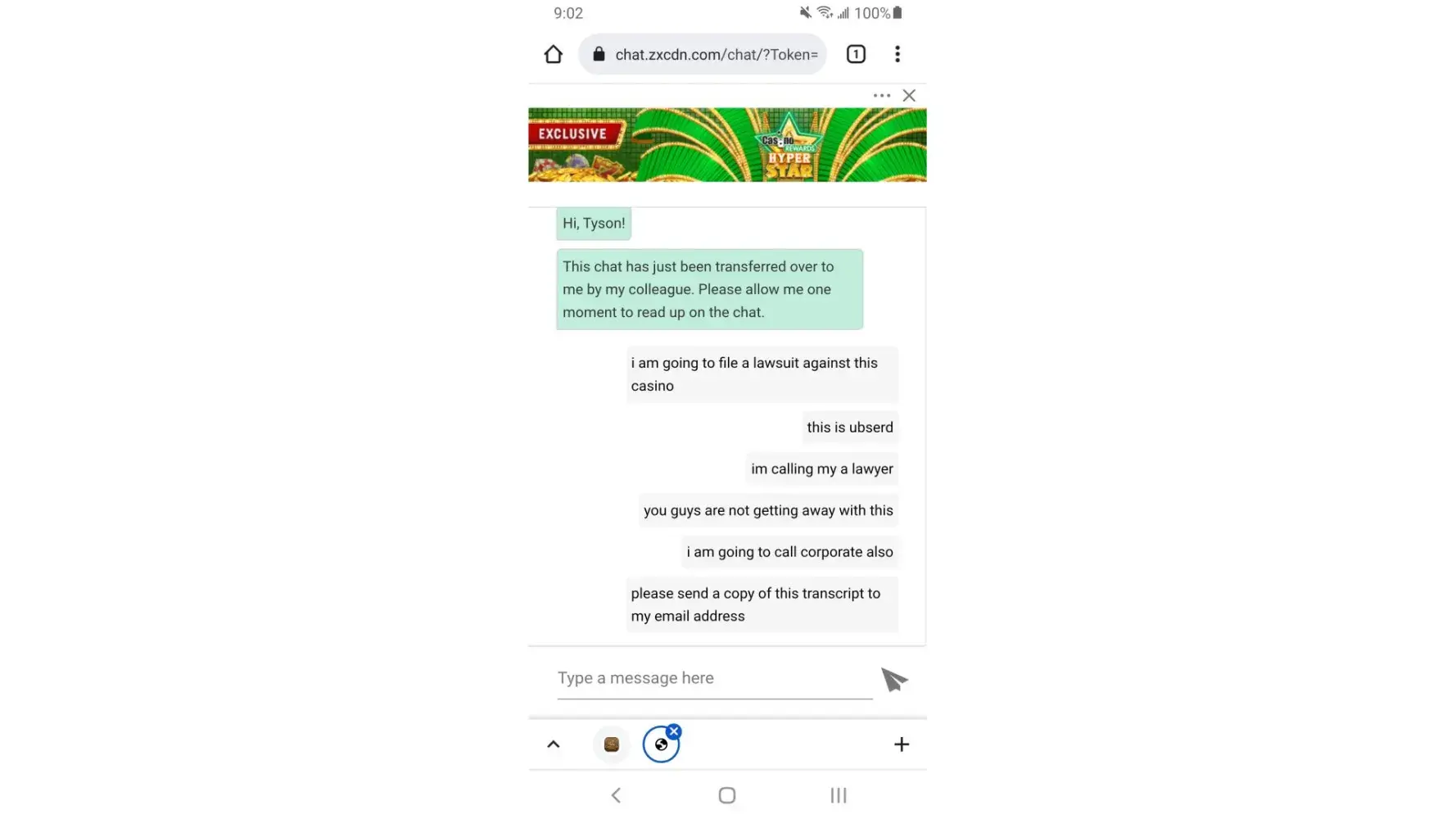 So I suggest you send this to your legal team, as I spoke to a friend that is a lawyer and he said I could represent this myself and win as I have all the proof to win and I will also get the News Paper, News Sites and News Stations involved to show how you guys work and cheat players out of money and can find may others that will testify the same thing happened to.them