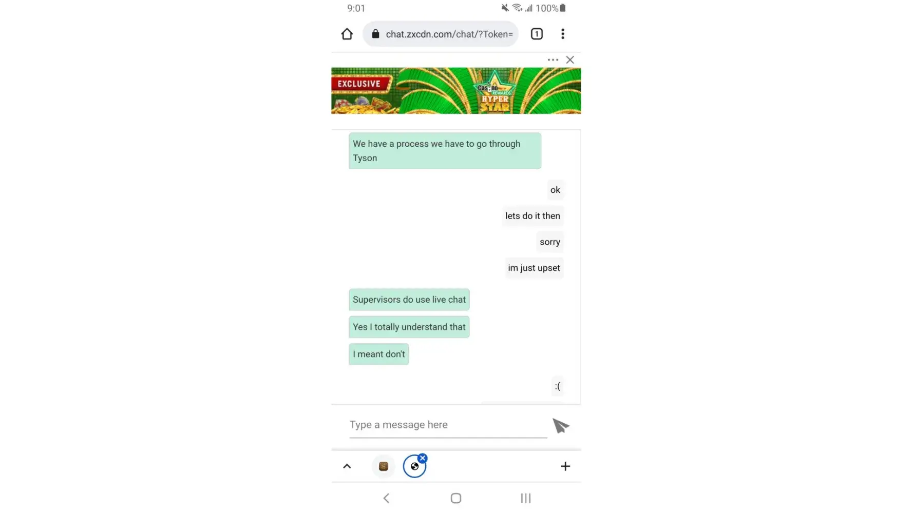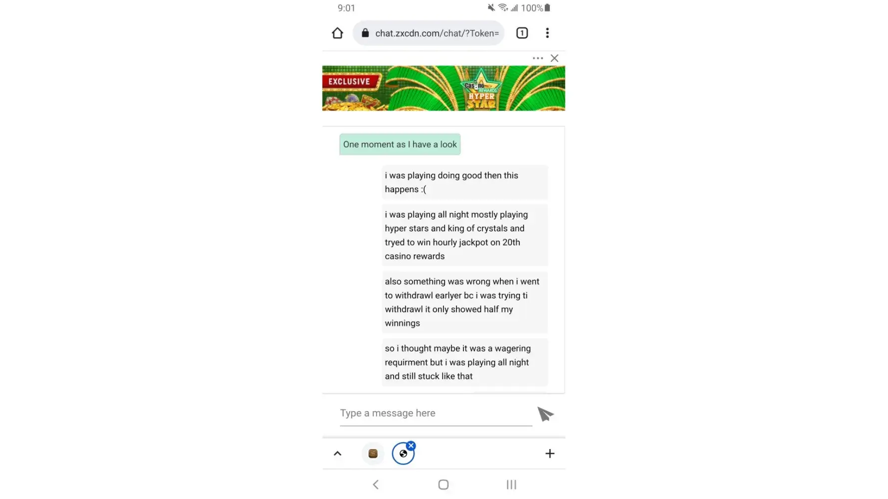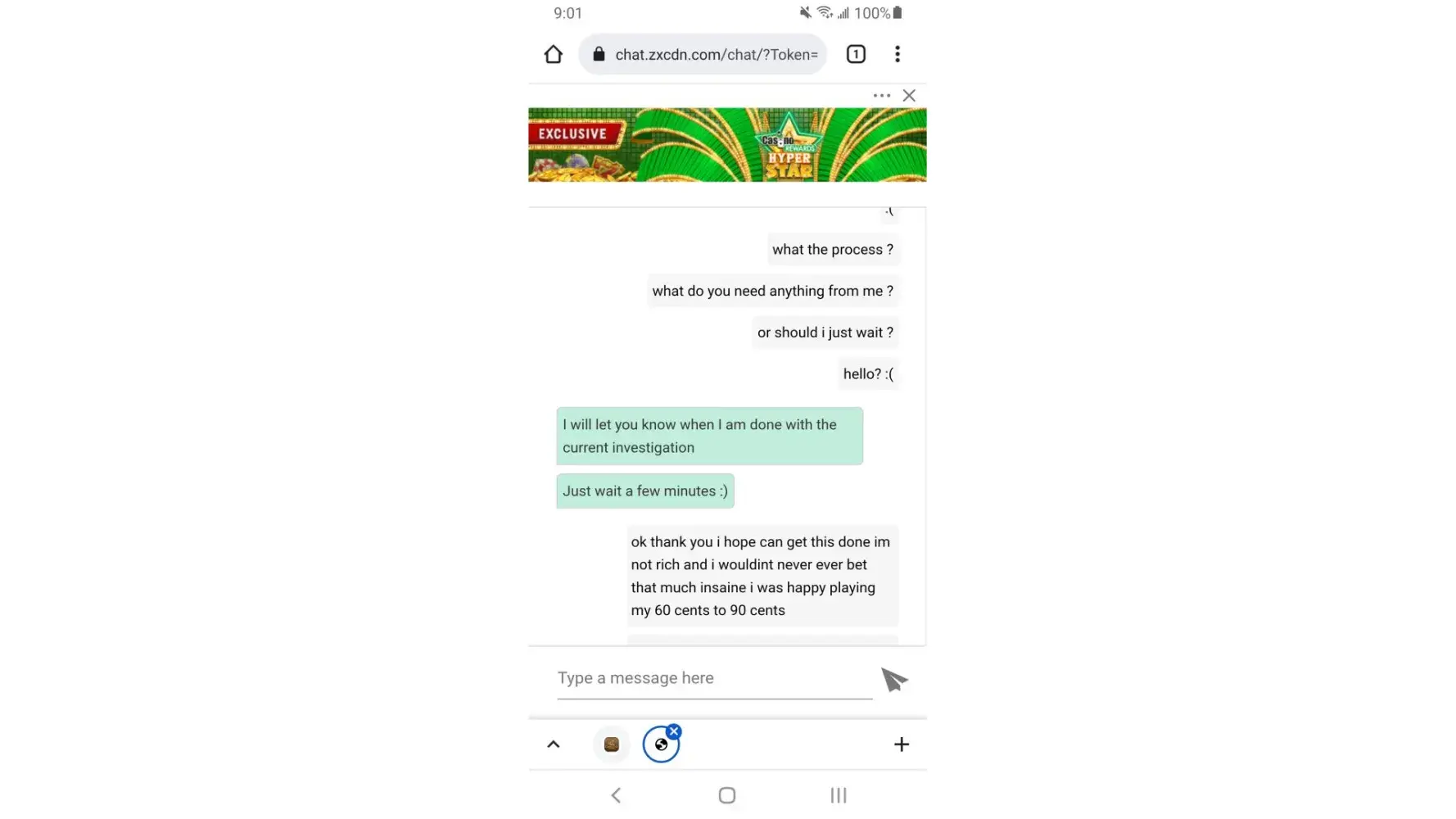 N to lure u in and not even honor the promotion they send u...you are then accused of exploitation. That's some fake excuse to not give me the slot money that should be mine without question.