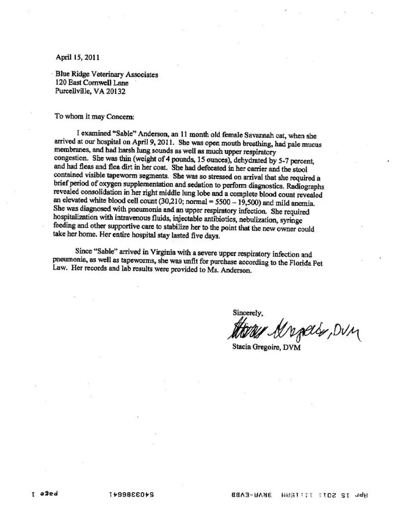 Read full complaint and 4 commentsGulf Coast Exotic Felines, Heather Goerdt - Very sick cat