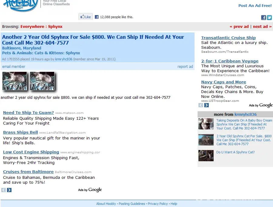 Zion cattery -fake web site, tring to steal innocnet buyers money they are located in Africa Fraudulent web site & Add postings On the Zion cattery web site web --all kitten being offered for sale are pictures they stole off of other breeders web sites trying to scam the public, steal innocnet buyers money they have posted a variety of breeded of cat...