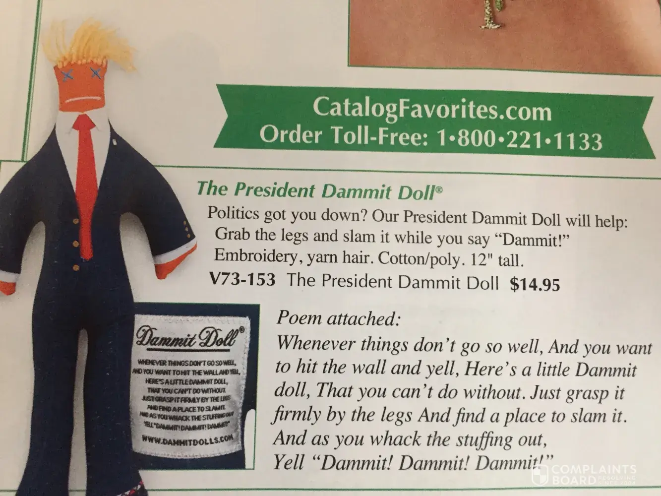 All that being said I don't think any of the above compares to the current release of their catalog that now features a "[censored] Doll" in the likeness of President Trump. I don't care who anyone votes for, but depicting a president on a "[censored] Doll" with instructions to beat it saying [censored] [censored] [censored] is NOT acceptable. What is the deal? I thought we were trying to eliminate bullying from our country. I'm somewhat surprised with selling that you didn't also add a life size replica of Kathy Griffin's severed Trump Head. SICKENING!