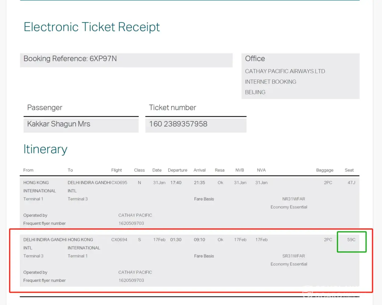 I took the flight CX355 from Beijing to Hongkong on 2024-04-29. It was delayed by almost two hours, consequently ny connecting flight to Hanoi CX743 was missed.