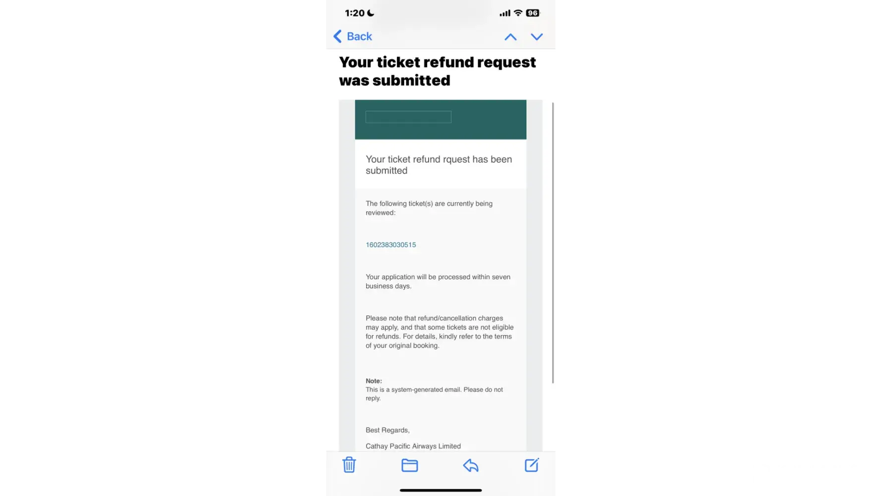 "With regard to your booking reference number [protected].