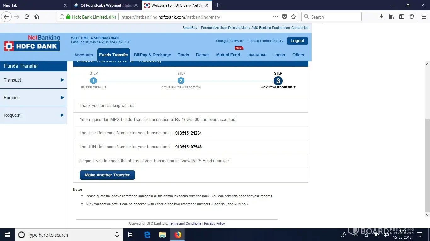 CC Avenue Sales Representative Mr. Mohit from Noida New Delhi contacted me 12/05/2019 and asked me to pay on line Rs 500 towards service taxes (which in turn I did transfer on line on 14th May 2019) and in turn they will refund the amount Rs 17, 365 and request me to perform a procedure through my HDFC Net Banking Portal. I followed Mr. Mohit Instructions by creating a beneficiary account for Oriental bank of Commerce and entered their account details and entered the money Rs. 17, 365 with unique remarks to code Cc Avenue Internal Server and confirm. Later followed with OTP message and to my disbelief when I completed the procedure the amount has been immediately deducted from my account. I did raise questions on how HDFC Net banking and International Server will interact as Mr. Mohit keep promising that we I complete the procedure additional pop up from CC Avenue Internal Server will begin and I need to complete the procedure so that entire Rs. 34, 730 will be refunded. During this transaction there was one other person from CC Avenue IT department was providing all the instructions. Since I started panicking instead of crediting the base amount extra amount were deducted based on my debit instructions and I started sharing the screen shots messages from the Bank side to them. There was Mr. Aiyush Khurana and Board of Director Mr. Pawan Kumar who were involved later on resulting in eroding my bank balances to the tune of Rs. 1, 76, 888 as on date.