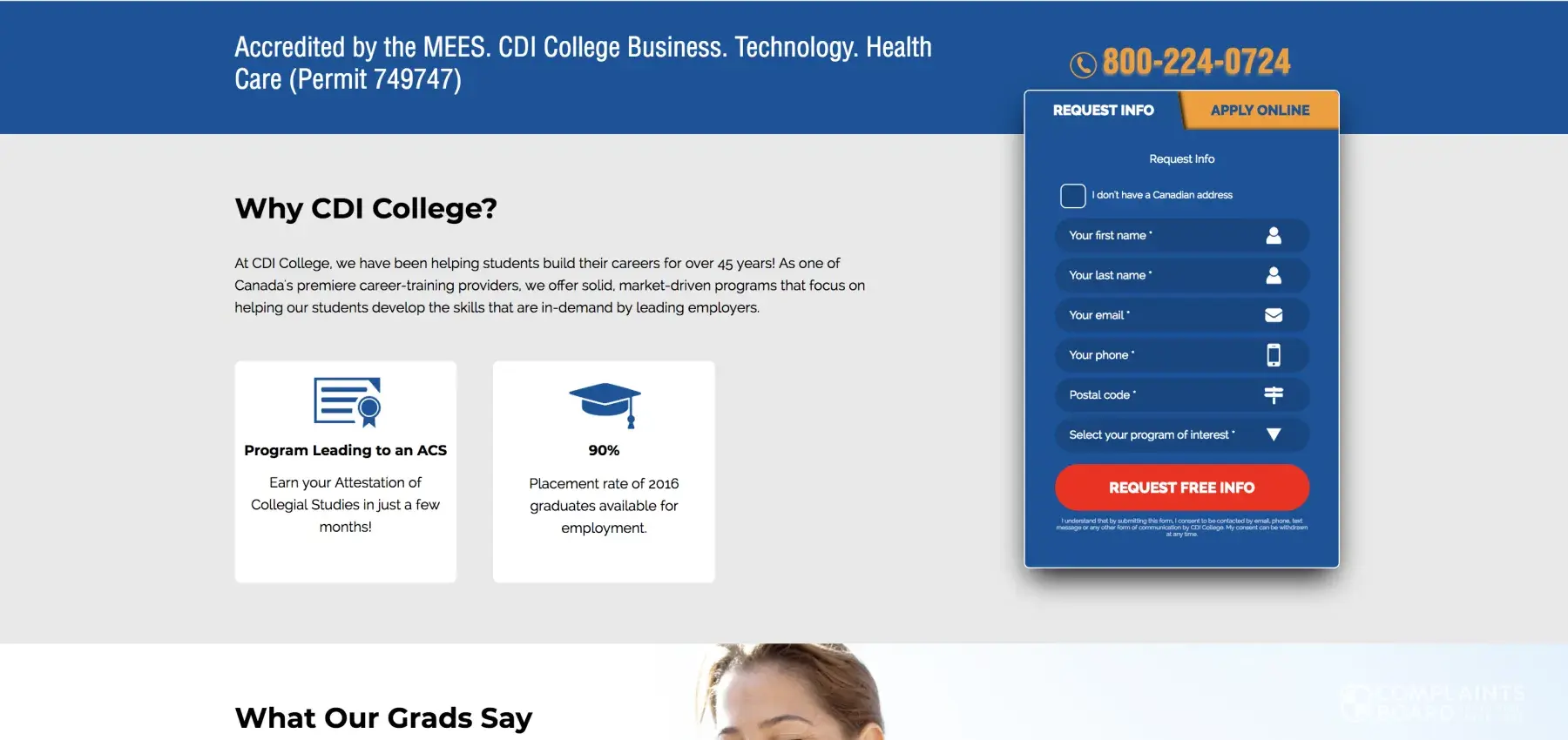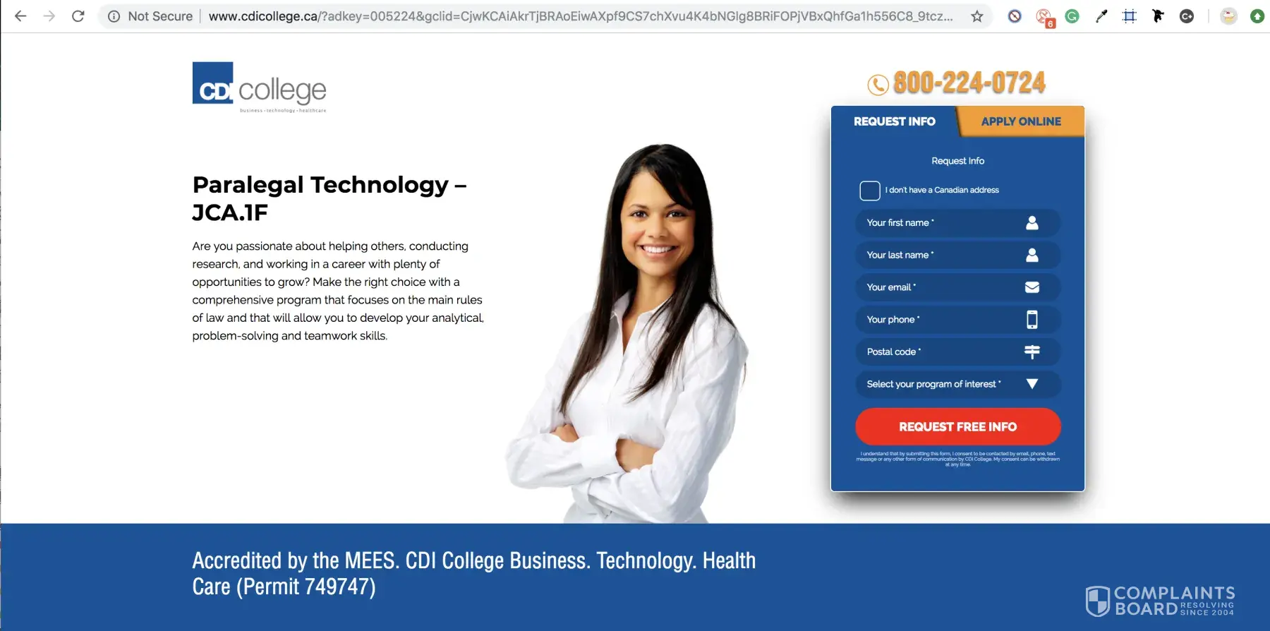On February 18, 2019, I was looking into schools who offered a paralegal technology program and came across CDI college because they were the first to pop-up on my Google search page (props to their web team for having really good SEO). So I went to their website and there was not much information except for a basic description of the program, a basic "what our grads say" section (which doesn't give much either in terms of credibility. Anyone can easily just slap a quote and a name.) and then they had the little "request info" form that was permanently stuck on the screen no matter where you scroll.