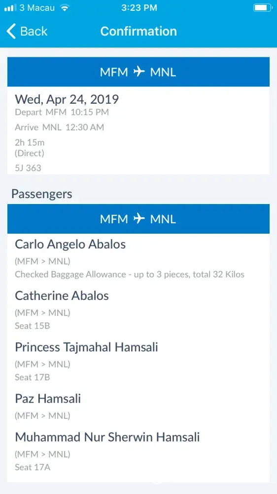 Cebu Pacific Air singaporean passenger of flight 5j 804, singapore to manila 22 jan 2019