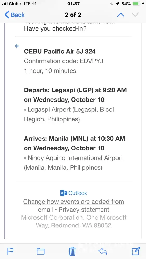Zamboanga to Manila (31 Oct 2018 12:20PM Flight 5J 860)