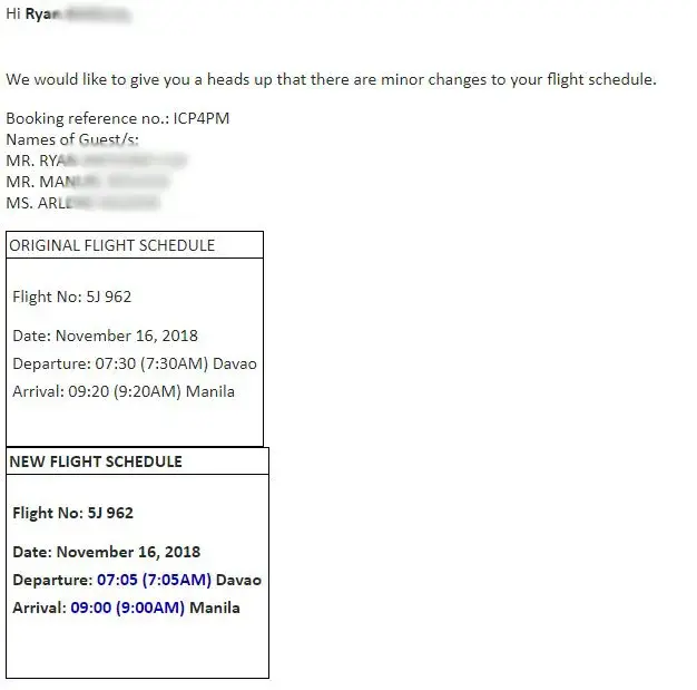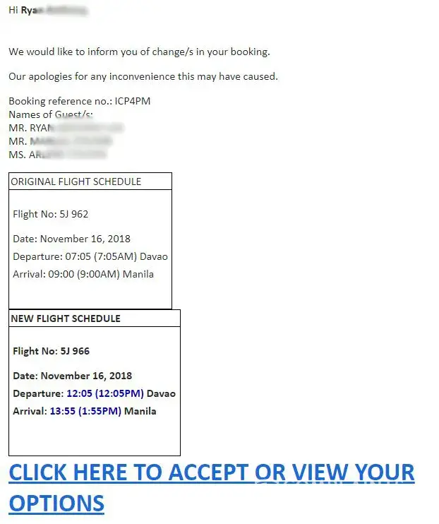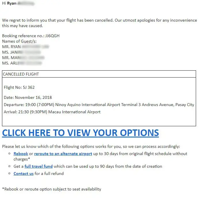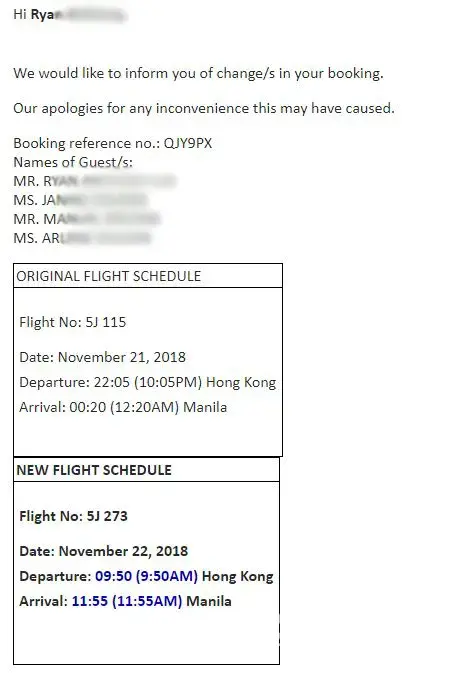 First of all they kept changing flight times on our hkg-mnl, dvo-mnl, and mnl-dvo flight. Then they cancelled our mnl-macau flight. They only gave us cancellation option, not even a rebooking for mnl-hkg? What the hell. We had to book another flight to travel to hkg and paid extra for mnl-hkg just to get to macau via boat. And guess what, a few weeks later, they fking cancelled our dvo-mnl! We had to book another airline and paid extra.