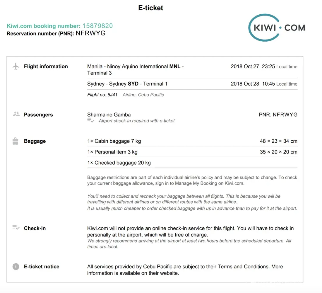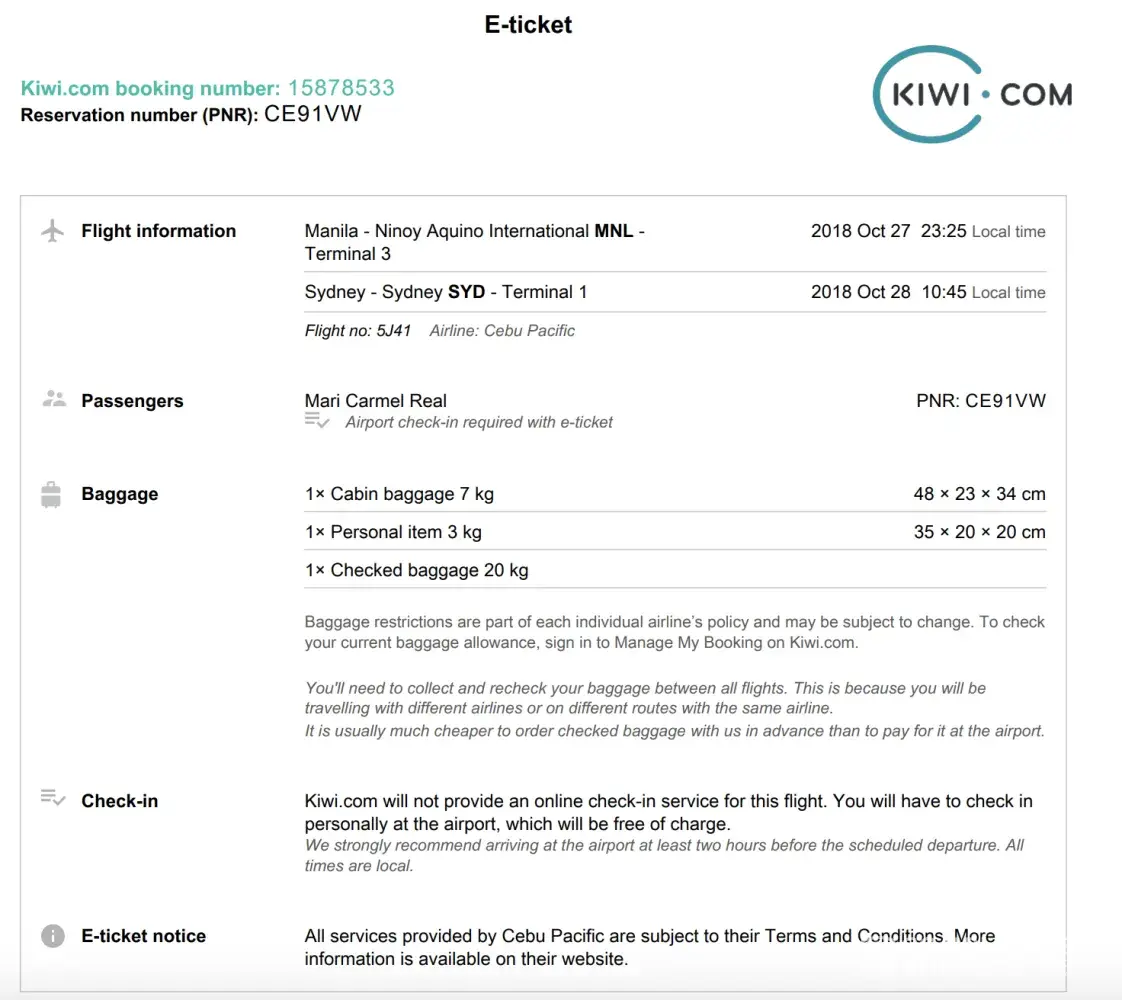The Cebu Pacific website is not forthcoming and confusing at best with the necessary information for potential passengers to make informed decisions in booking flights online. Cebu Pacific needs to clearly state their check-in policies on their website and in their online bookings, and maintain currency and relevancy upfront where it can easily be seen BEFORE any passenger purchase of flights. Cebu Pacific should be specific, down to the last