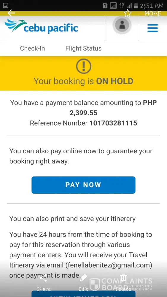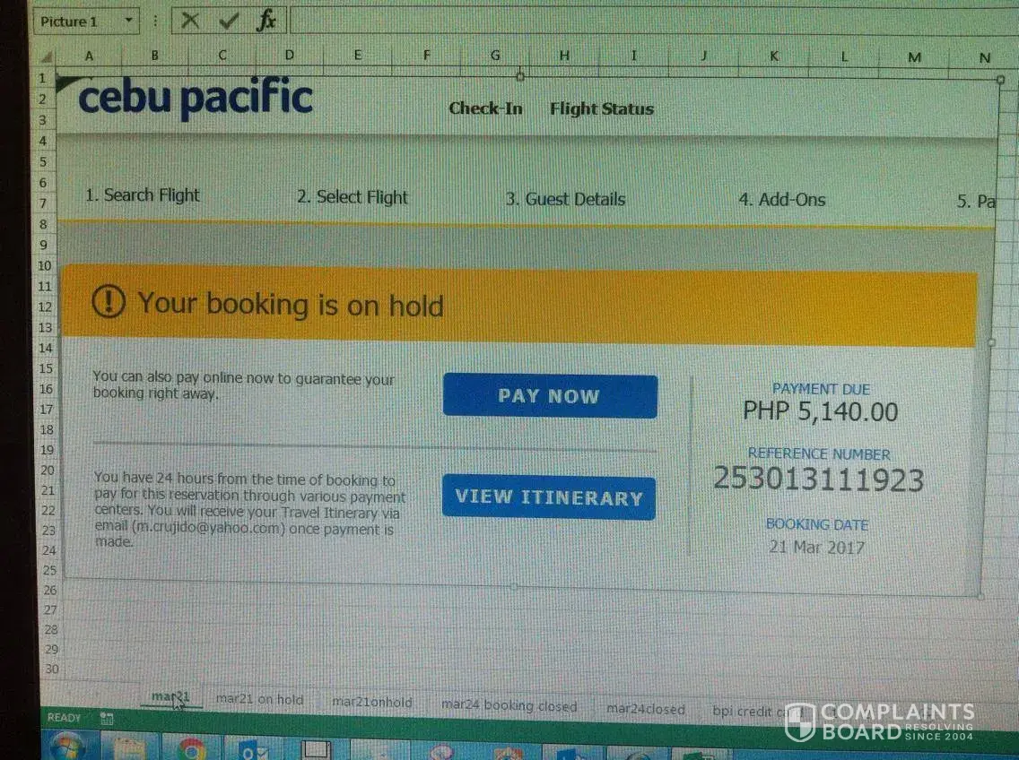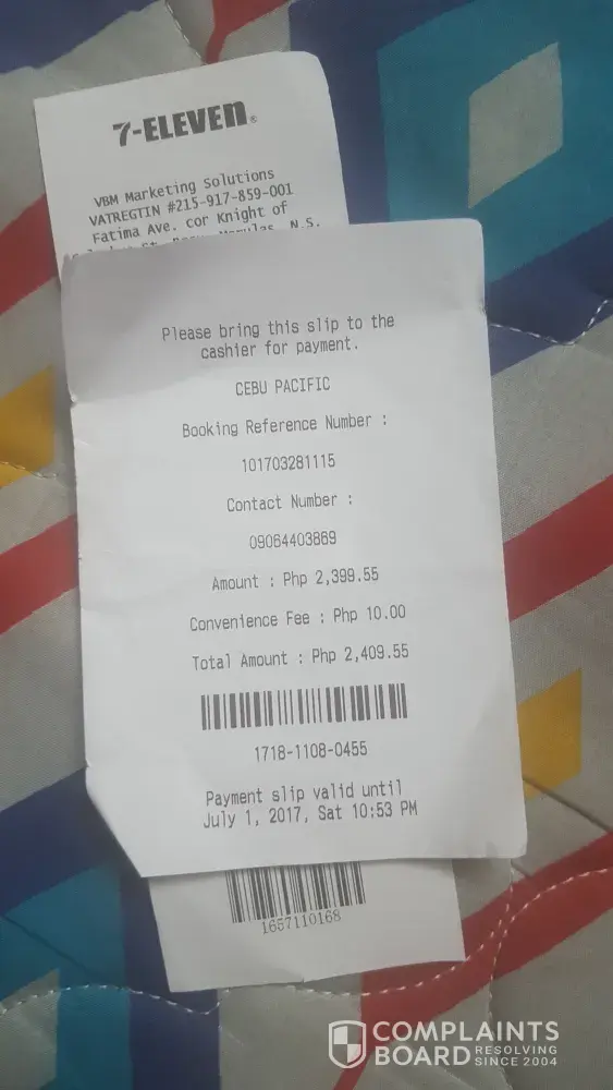 Cebu Pacific Air I paid my booked ticket at payment center but no itinerary received