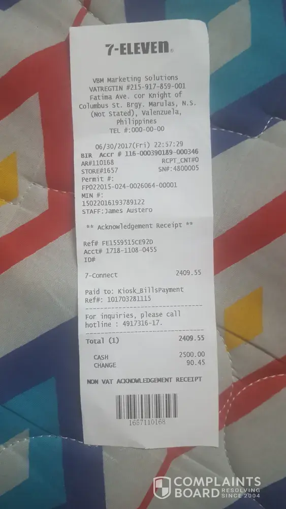 I paid the ticket in 711 june 30 @ 10:57 pm and wala akong natanggap na email ng itinerary ko, so around 11:30 tumawag ako sa hotline nyo and ang sabi delayed lang daw yung pag send ng info about my payment and iuupdate na lang daw ako. Around 7: 30 am may tumawag saken na taga cebu pac and asking for the ar# of the receipt and iuupdate daw ako.